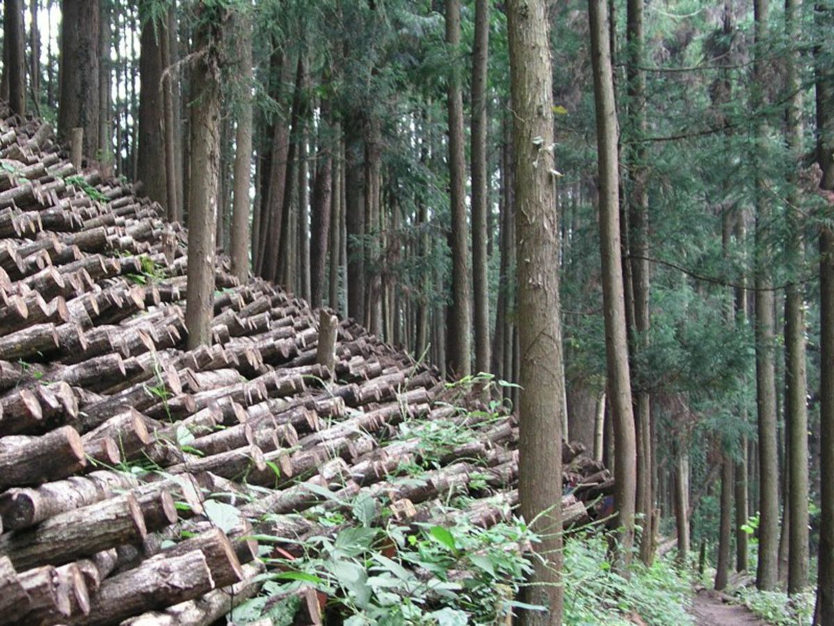 (この壁の)背後に広がる杉林(の環境)のなかで、個々の生き物はそれぞれ独立しているので無く、他の個体(異種・同種)と関連して生きている。