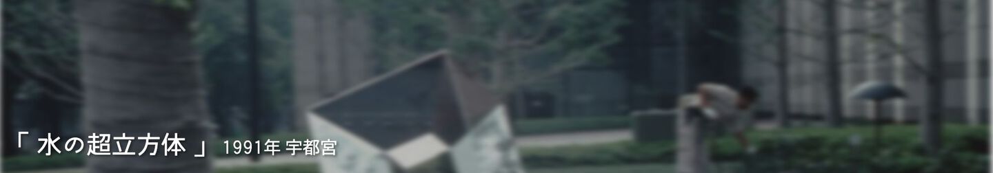 ステンレス鏡面によって浮き出る虚構の立方体。噴水が出ると隠れる